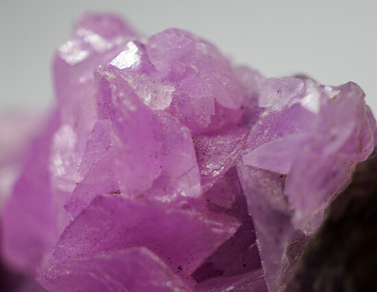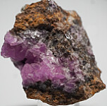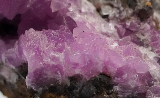 Vug in rock matrix lined with vivid pink crystals of Cobaltian Calcite.