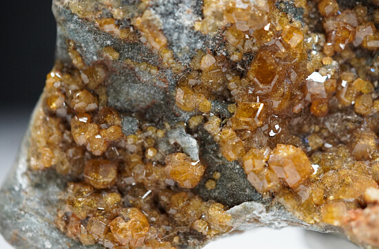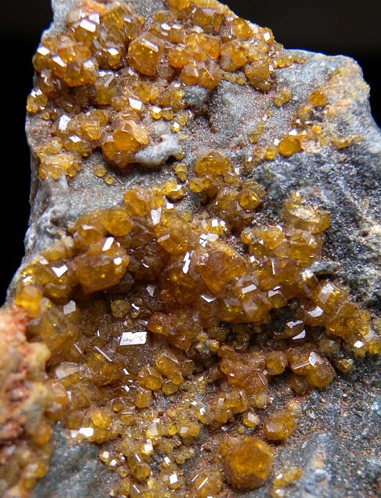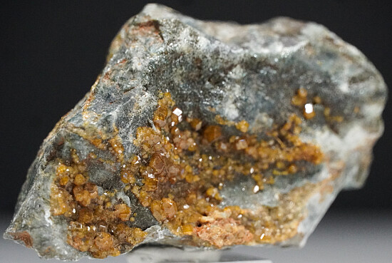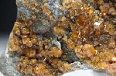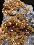Good coverage of golden Topazolite crystals on matrix. The Yellow Cat Mine is known for producing the best Topazolite in this mineral rich area that includes the Benitoite Gem Mine. Individual crystals reach 4mm in size. Valued at $300. Ex. Len Pisciotta collection.