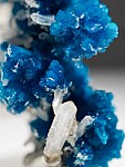 Exquisite specimen of intergrown spherical aggregates of vivid blue Cavansite with attached Stilbite. Well crytallized all around and undamaged, a floater with no points of contact. Ex. Len Pisciotta collection (his old label shows a price of $800).