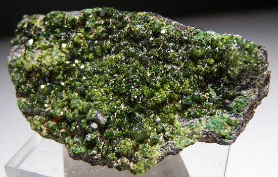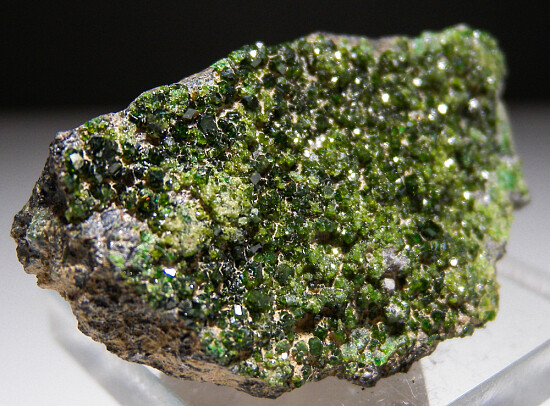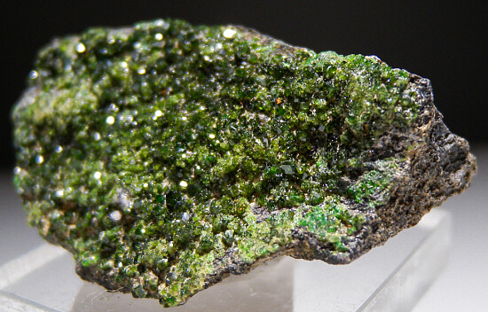 Sparkling green Uvarovite crystals on Chromite matrix. These are a California rarity and colorful. Collected by Chuck Trantham many decades ago and now rarely seen.