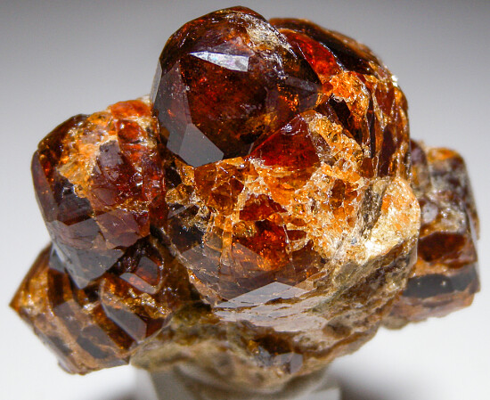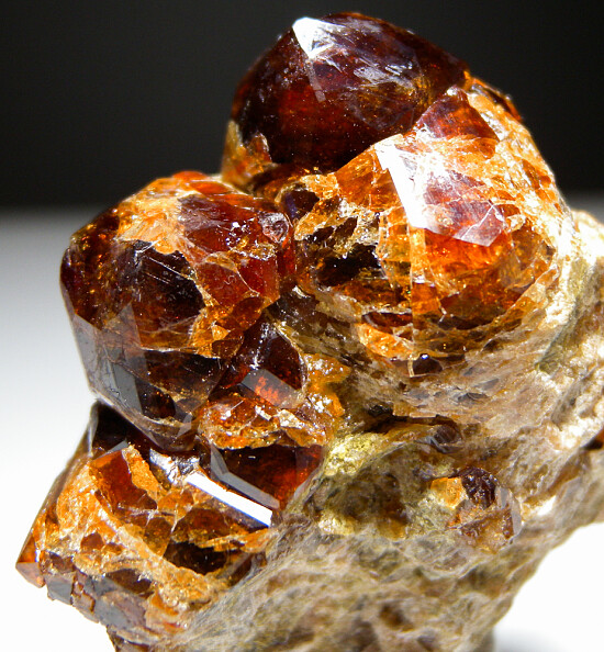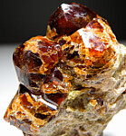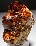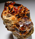 Glassy red Grossular crystals to 1.5cm on a matrix of massive Grossular. Richly colored, lustrous crystals.