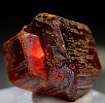 Translucent to transparent red/orange single Wurtzite crystal.