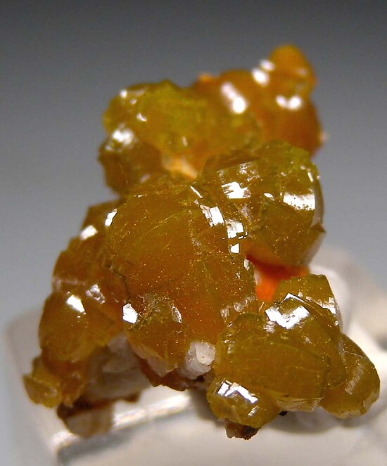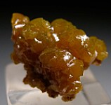Wet-looking crystals of Pyromorphite over Quartz matrix. The crystals are translucent with a green to yellow color.