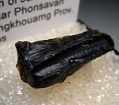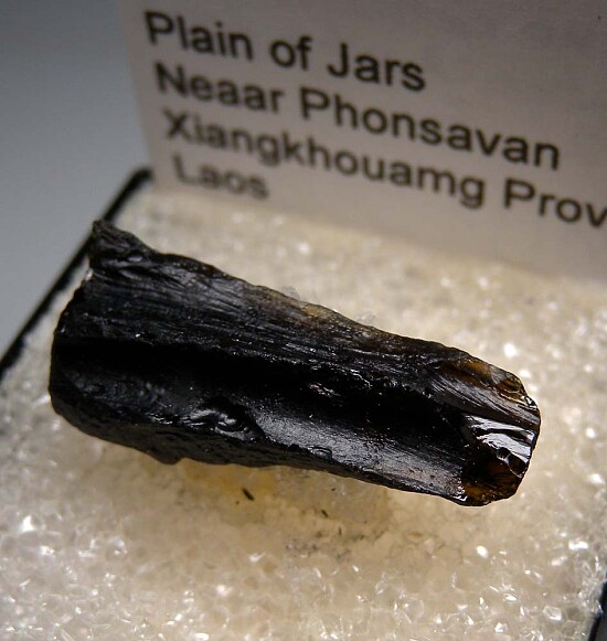 Black Tektite from and interesting locality in Laos. The Plain of Jars is an archeological area named after the thousands of stone jars found in the area. Ex Chuck Trantham collection acquired from Art Reno.