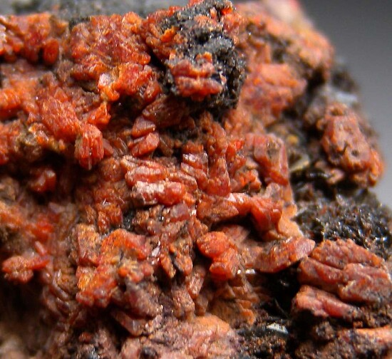 Rare orange Durangite crystals on Hematite. The front face is loaded with crystals, and the sides and back also have a good amount of crystals.