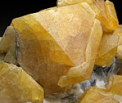 Rare specimen of Italian Scheelite on matrix. Yellow to orange crystals that reach 4cm in size associated with books of dark green Clinochlore. An old specimen from a classic locality not commonly seen for sale. Ex. Neil Levett collection.
