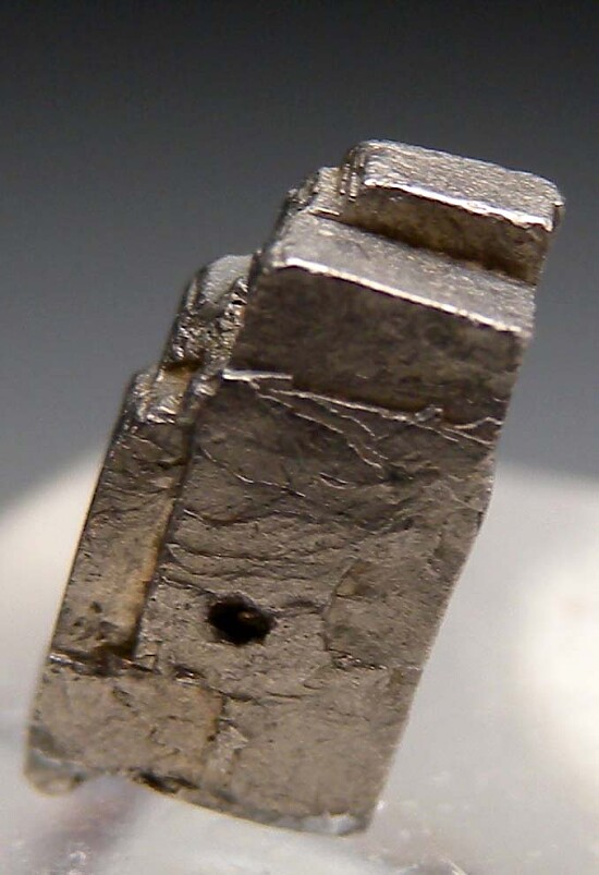 Single cubic crystal of Zvyagintsevite, an ultra-rare natural alloy of Lead and Palladium. Complete all around. Has smooth faces with metallic luster on all sides and the characteristic feature of stepped growth. This resembles the Platinum crystals found at the same locality, but are much much rarer. Ex. Neil Levett collection.