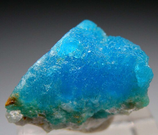 Specimen of vivid blue, translucent Krohnkite from Chile. Krohnkite is a rare sulfate and this specimen is from the Type locality for the species. For shear color, it's hard to match the the crazy neon blue of this mineral (maybe Paraiba Tourmaline?). This is a solid specimen of Krohnkite with a tiny amount of matrix, a lamellar growth of crystals in parallel formation. Beautiful old time specimen!!!