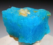 Specimen of vivid blue, translucent Krohnkite from Chile. Krohnkite is a rare sulfate and this specimen is from the Type locality for the species. For shear color, it's hard to match the the crazy neon blue of this mineral (maybe Paraiba Tourmaline?). This is a thick seam of solid Krohnkite without matrix, a lamellar growth of crystals in parallel formation. Beautiful old time specimen!!!
