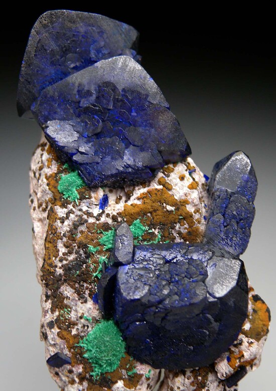 Deep blue Azurite crystals to 2.5cm in size on matrix with velvety green Malachite. Highly aesthetic Azurite specimen in excellent condition.