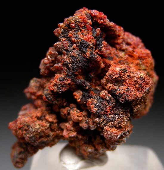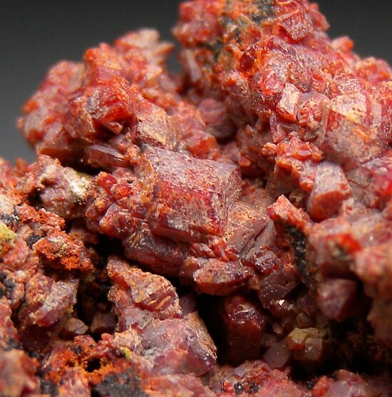 Red/orange Durangite crystals covering Hematite. Good crystals all around. Both front and back sides photographed.