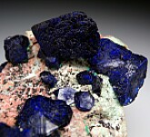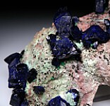 Deep blue Azurite crystals to over 3cm in size on a matrix that is dusted by a thin layer of green Chrysocolla and Malachite. There is a wide range of crystal sizes that are well distributed across the matrix. Highly aesthetic Azurite specimen in excellent condition - all the crystals are good!