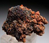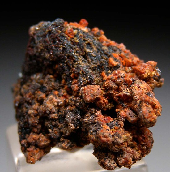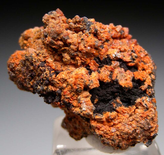 Red/orange Durangite crystals on all sides of a Hematite matrix. A flaoter with crystals all around.
