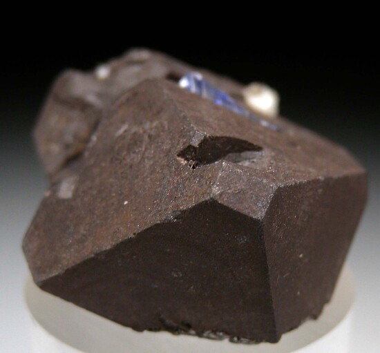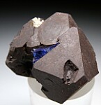 Group of 3 Alabandite crystals with attached Tanzanite, Diopside, and Graphite. Well developed Alabandite crystals that are undamaged and complete all around with a flat area on the back where the crystal group attached to Graphite. A top quality piece that I've held in my collection since the inital finds.