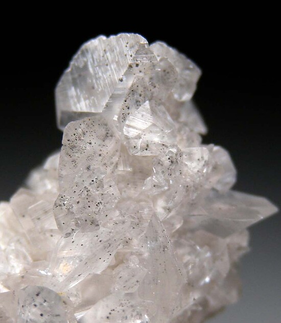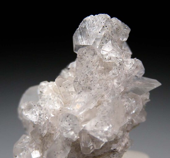 Thumbnail-sized cluster of lenticular, transparent Calcite crystals included by sparkling metallic Marcasite. Bright, undamaged crystals all around.