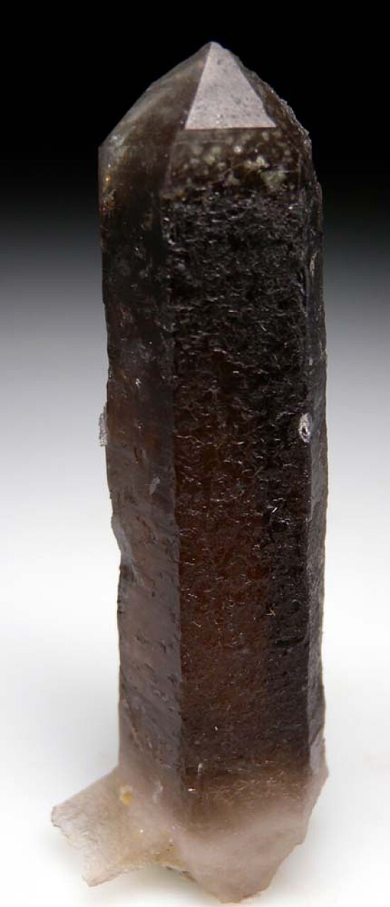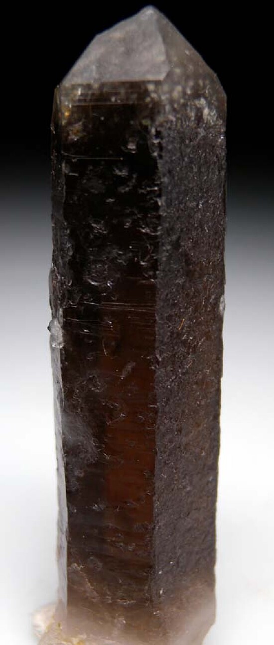 Tall single transparent Smokey Quartz crystal from Paul Geffner's claim on Peterson Mountain. Complete all around and so clear it could be faceted into gemstones. Self collected by me this past summer.