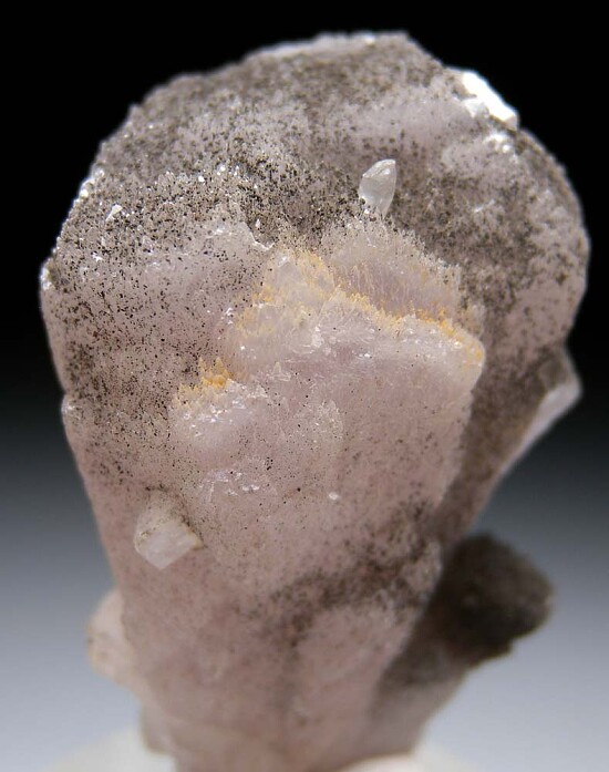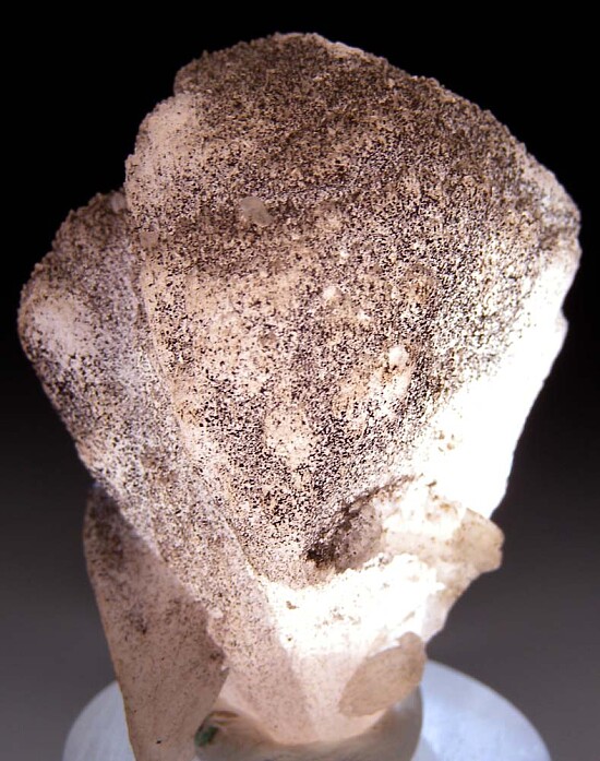 Translucent pink crystal cluster of Mangano Calcite. Big, beautiful cluster that tapers outward as it rises up. Well crystallized all around.