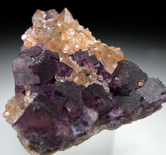 Quartz crystals with cubic purple Fluorite crystals to 1.5cm. A colorful Fluorite specimen from an area better known for Amethyst. The Fluorite crystals are translucent and have a deep purple coloration.