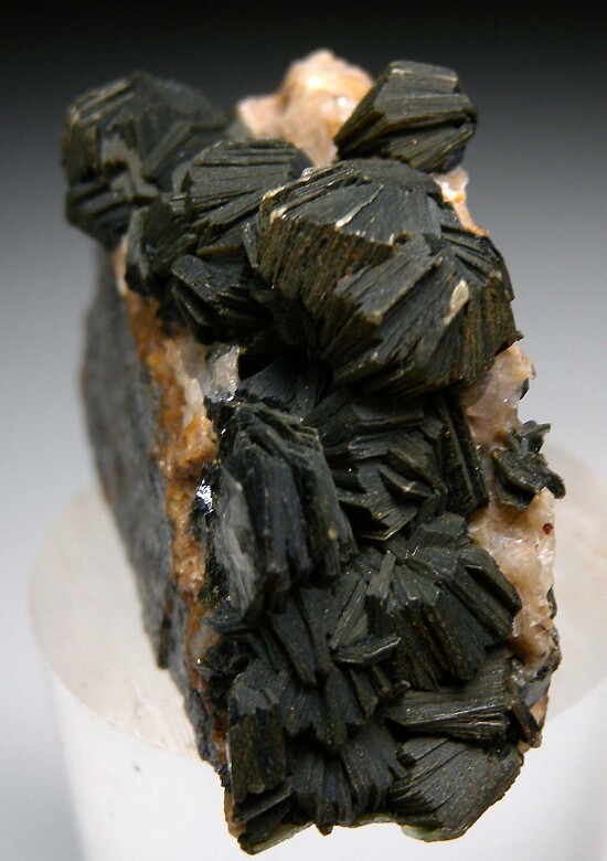 Rosettes of deep green Clinochlore on matrix. Sharp crystal groups!