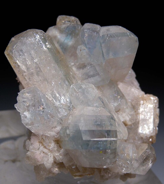 Rare matrix specimen of the classic 'blue-stripe' Euclase crystals found at this locality. There are over 10 good crystals pointing in vary directions, all with bright glassy luster, the largest 2cm in size. Many of the crystals show large transparent zones. Undamaged.