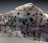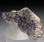 Translucent Chalcedony included with specks of Copper and Chrysocolla. New and interesting material, polished on the front face.