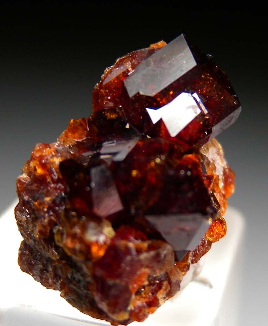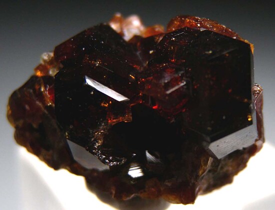Sharp, glassy red/orange Grossular crystals to 7mm on matrix. Excellent quality crystals and neat, obscure locality.