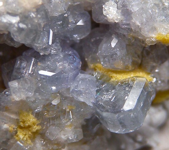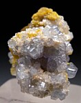 Cluster of glassy, purple/blue Apatite crystals with Bertrandite. The Apatite crystals are tabular and reach 4mm wide. Valued at $150.