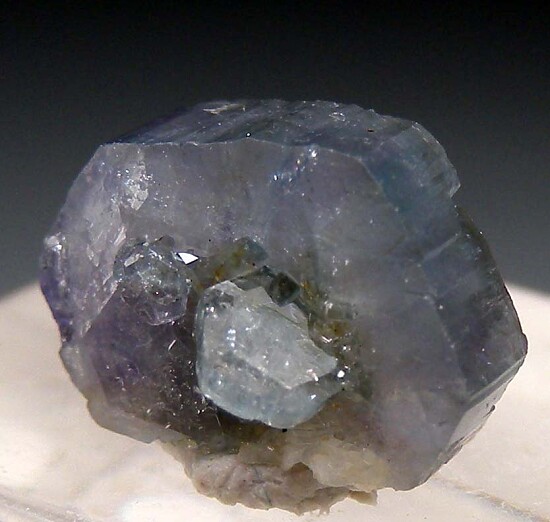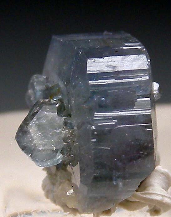Single purple/blue Apatite crystal with smaller crystals attacheds. The Apatite crystals are tabular and reach 11mm wide.