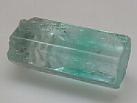 Terminated single Emerald crystal from recent finds in Nigeria. Highly transparent and glassy with some horizontal color banding. Complete all around with a smooth, flat termination. It has some chipping around the termination as seen in photos, but still displays great from front.