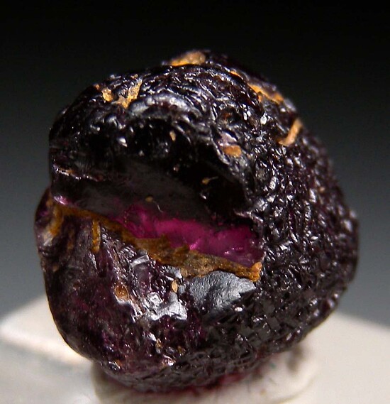 Rounded purple Garnet crystal from Idaho with great purple color. Amazing color when backlit!!! This is a gem crystal that shows it's transparency when backlit. Weighs 9.45 carats.