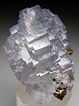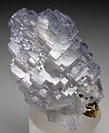Transparent, stepped, cubic Fluorite crystal with attached Chalcopyrite crystals. The Fluorite is light blue, transparent, and undamaged. Ex. Dr. Steven Morehead collection.
