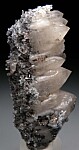 Cris-crossing Quartz crystals known as 'Gitter Quartz' (a German name for fence or lattice Quartz). The Quartz crystals form epitaxially on an elongated single Feldspar crystal in a lattice of crystals. The tan-colored Feldspar is mostly covered by the Quartz, but visible on one end. The Erongo Mountains is the only locality I'm aware of that produces this style of unusual Quartz specimens.