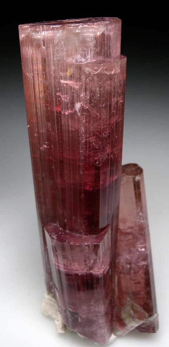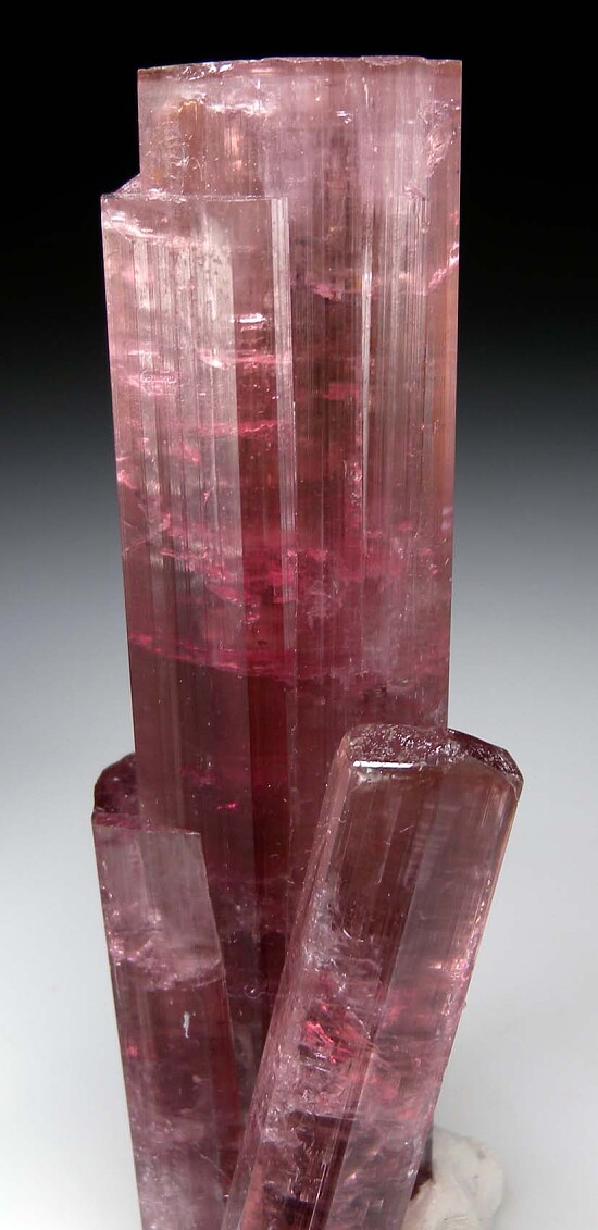 Large cluster of pink Tourmaline crystals from recent finds in far eastern DR Congo. This specimen is significan for both it's large size and the cluster formation (most from this locality are singles). Complete all around and undamaged, though the side crystal is repaired (the upper half of the side crystal fell off during the cleaning process due to iron removal and was reattached). High glassy luster, translucent with areas of transparency. Weighs 310 grams (about $71/gram).