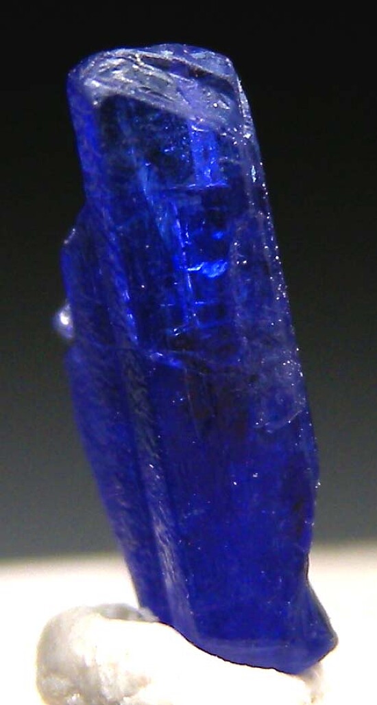 Single 'Cobalt Blue' Tanzanite crystal from a small recent find. This color, a deep almost silky blue that reminds me of Kashmir Sapphire, is only rarely found (I've only seen it found twice) and reportedly only from one small artisanal mine in the deposit. These crystals are never very large. Crystallized all around with a stepped termination.