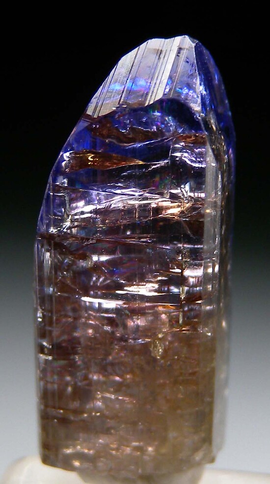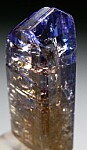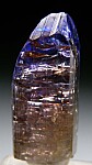 Glassy single purple/blue Zoisite crystal known as Tanzanite. This is a fabulous trichroic crystal of blue, purple, and light red (up the C-axis). Well terminated crystal with glassy luster and good transparency. Fully crystallized all around and undamaged. Natural, unheated gem crystal. Weighs 17.15 carats.