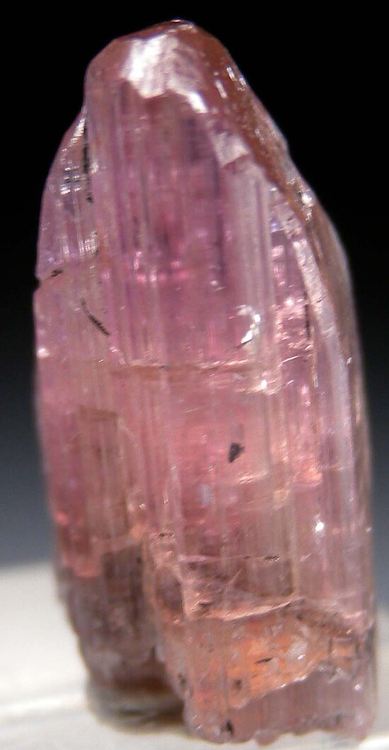 Rare pink Tanzanite crystal from Merelani. Pink is one of the hardest colors to find in Tanzanite, and they are ususally small when found, quickly moving into the thousands of dollars with good size. This one has decent size at 2cm and good transparency in the upper areas. Natural, complete, unheated gem crystal. Weighs 18.03 carats.