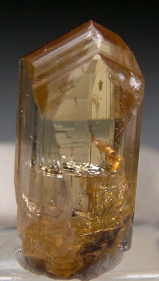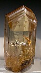 Glassy gem quality yellow Zoisite crystal (yellow Tanzanite). Exquisite crystal with excellent yellow color that gets somewhat peachy colored in another direction. Complete and undamaged. Natural, unheated gem crystal. Weighs 3.24 carats.