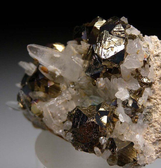 Shiny metallic Pyrite crystals intergrown with Quartz crystals. Classic USA specimen from the old mines of Butte. Ex. John Dabney collection.