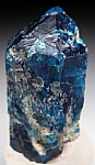 Intensely colored single blue Apatite crystal. The color when backlit is just incredible, a very rich, vivid blue. Complete all around and undamaged with typical indentations and 'melted' appearance. Ex. John Dabney collection.