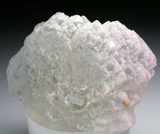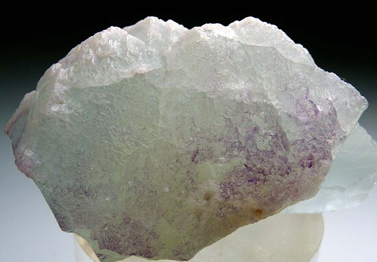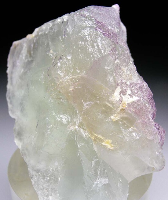 Large and colorful Fluorite crystal from Bingham. The stepped cubic crystal surfaces are slightly frosty on the outside, and internally transparent to translucent with shades of green and purple. Good sized crystal for the locality. Ex. Jevin Litwiler collection.