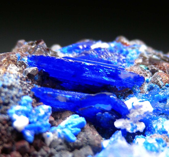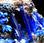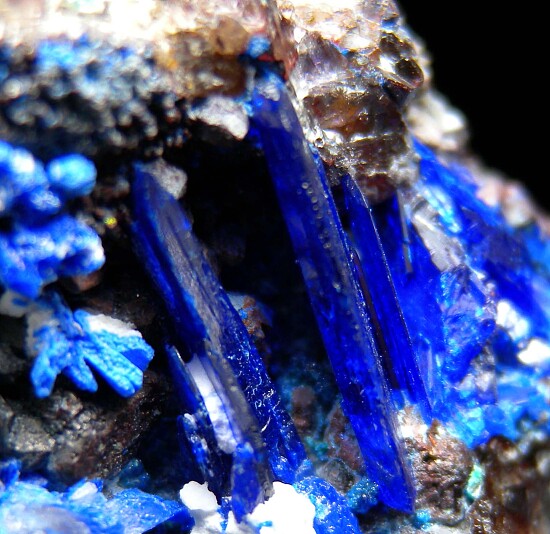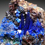 Well formed electric blue Linarite crystals that grew freely in a vug. The largest crystal is 1.1cm and shows transparency.