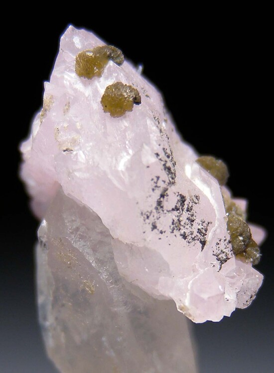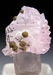 Mushroom-like specimen of Eosphorite on Rose Quartz atop and single colorless Quartz crystal. From a granite pegmatite located on a small island in the Jequitinhonha River, 3 km north of Taquaral. Ex. Marty Zinn collection.