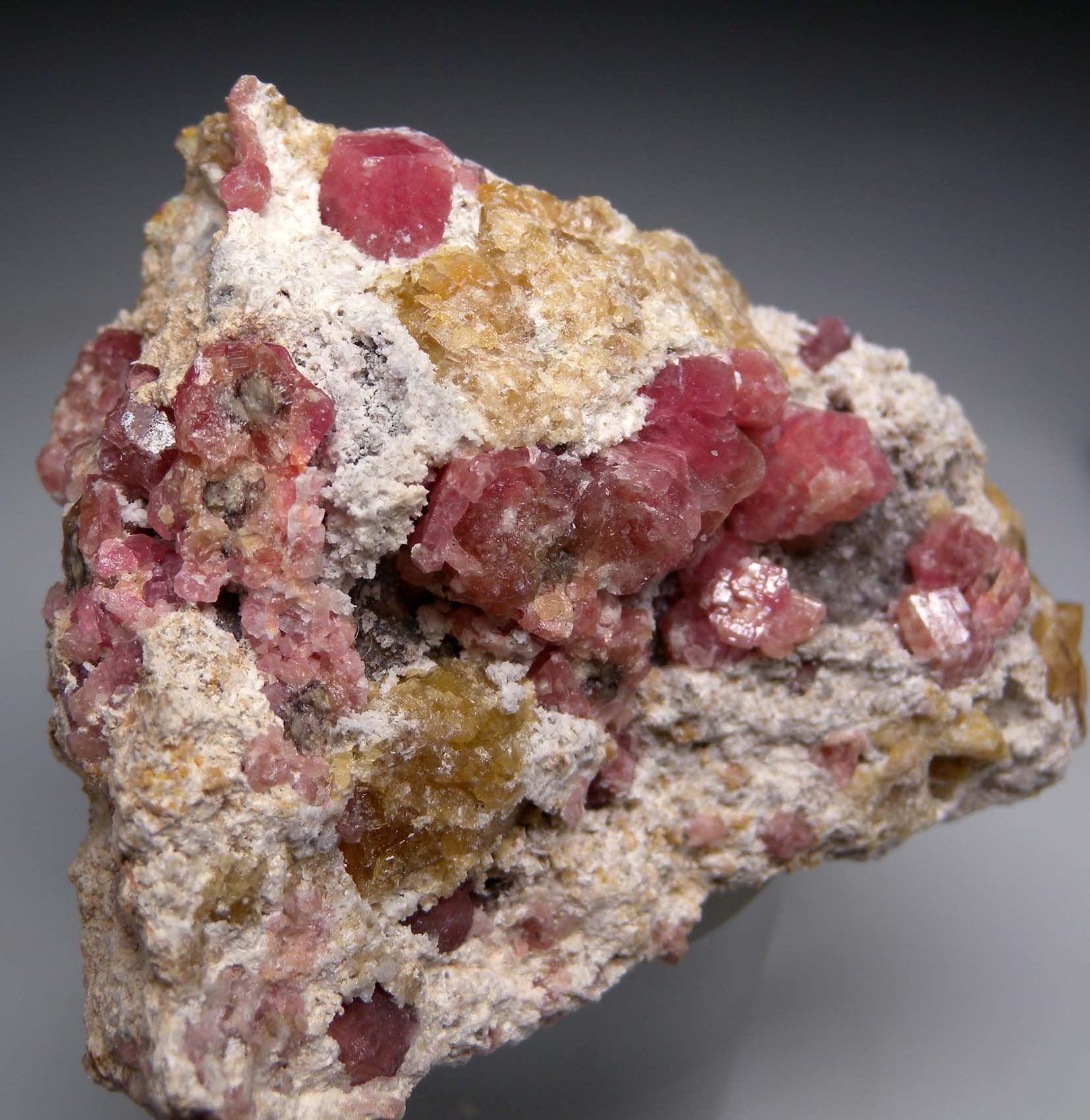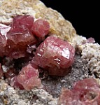 Pink Grossular crystals with brown Vesuvianite. There are some damaged crystals but also many good ones, including a well exposed, undamaged 1cm crystal.