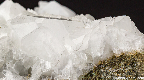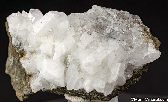 Glassy white Datolite crystals on matrix. Found by a friend while prospecting in this area known for Jadeite and Rosenhahnite crystals. These were found in a single boulder that was excavated during construction work on Highway 101. This boulder produced what are considered Californias's best Datolite. Individual crystals on this specimen reach 1.4 cm in size and are translucent to transparent. Superb piece for a California suite of minerals.