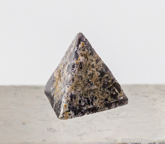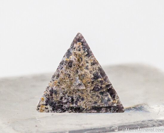 Complete and undamaged tetrahedron of Chambersite, a rare mineral found in salt formations in a small number of localities worldwide. Dark purple in color with sharp, pointed tips. Collected by Fred Pough in 1970. Ex. Chuck Trantham collection.