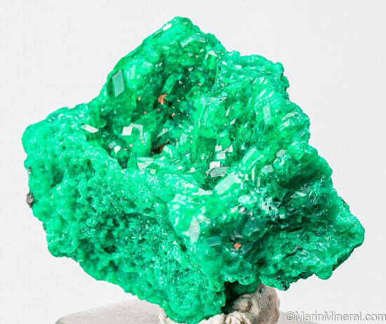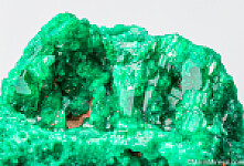 Crystals of deep emerald green Dioptase from the Congo. A vug in solid Dioptase lined with Dioptase crystals.