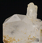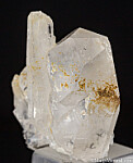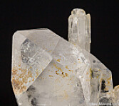 Cluster of Quartz crystals from the Mexican Danburite locality in Charcas. A larger tabular doubly-terminated Quartz crystal with smaller attached crystals that is complete all around. A beautiful thumbnail sized Quartz in pristine condition.