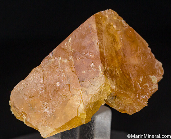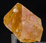 Large octahedral crystal of orange Scheelite from the famous Mt. Xuebaoding locality in China. The crystal has good color and translucency with areas of transparency. It is a flaoter crystallized all around and in excellent condition with chipping along one edge, otherwise perfect. These are considered among the world's best for species (if not the best).
