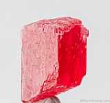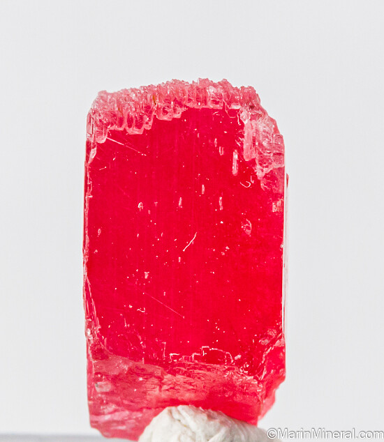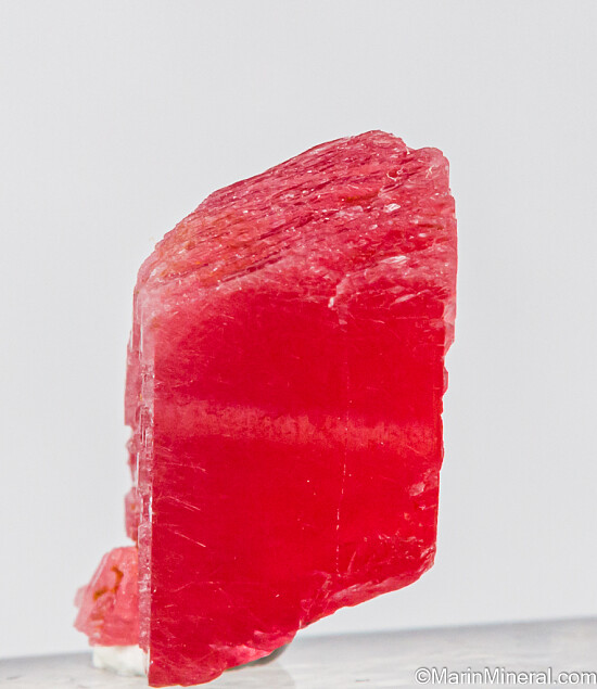 Single gem crystal of Rhodonite from recent finds in Brazil. This is a terminated crystal with cleavage faces on the sides. Translucent to transparent internally with superb color!