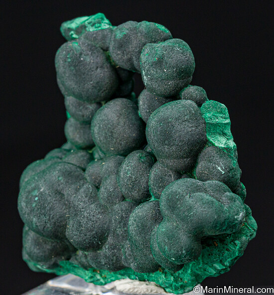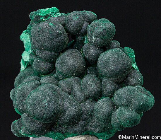 Satiny, botryoidal Malachite specimen from teh Shilu Mine in China. These are famous for the circular patterns of light that reflect off the satiny surface of each rounded mass of Malachite (not captured in photos but readily apprent in person). In fine condition and excellent specimen for this size range.